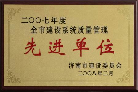 2007年度全市建设系统质量治理先进单位